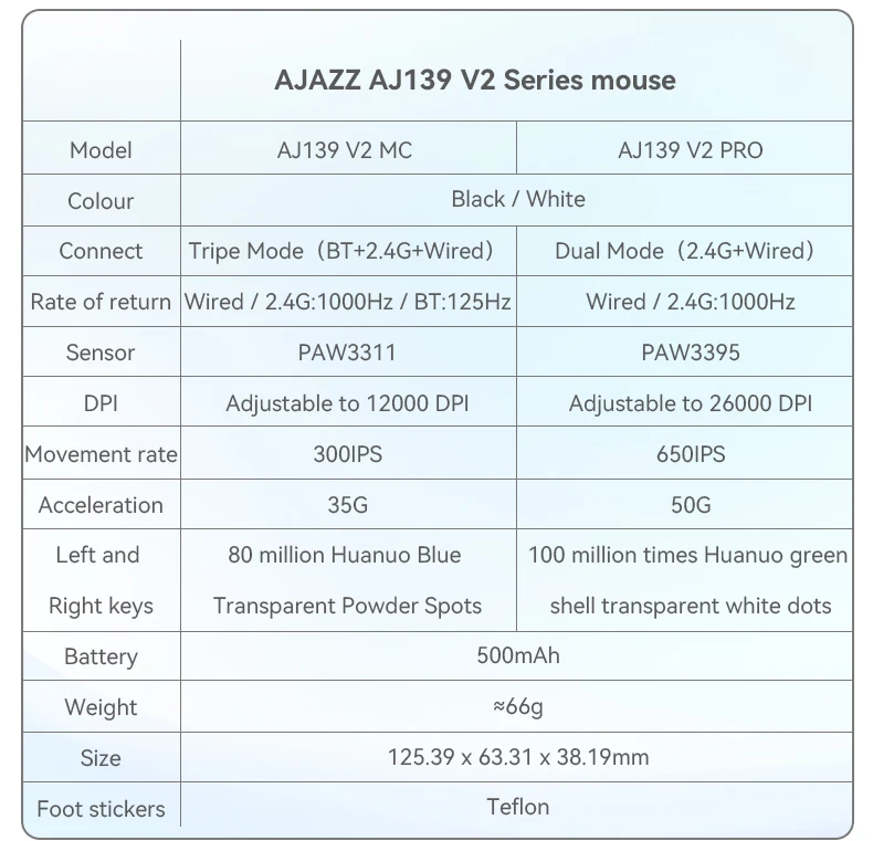 Sensor model: Pixart 3395 (26000 DPI|650 IPS|50G)