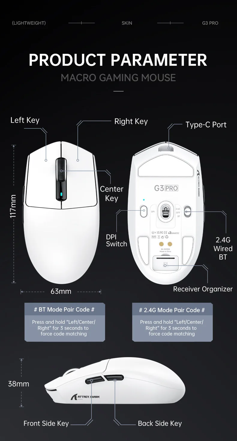 Attack Shark G3PRO with RGB wireless charging base - wireless three-mode mouse